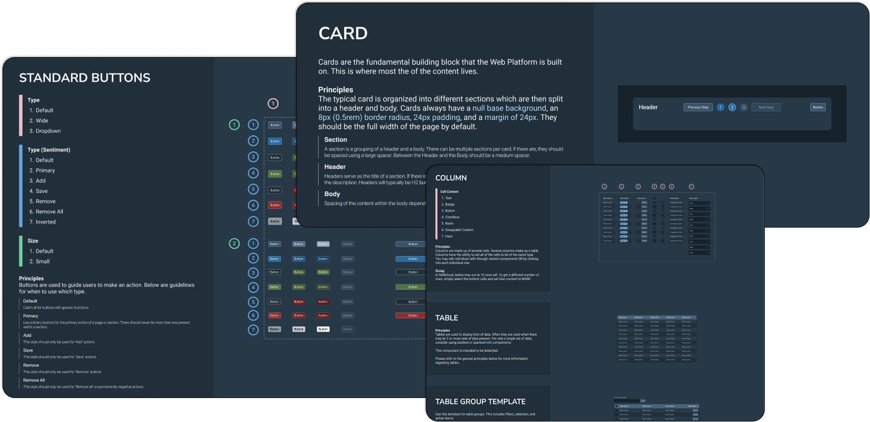 The product is intended to primarily be used on desktop, however there are rare cases were users may use it on mobile. Because of this, mobile styles had to be created and accounted for. This is the first product at MIM to have a mobile design system, so I needed to do independent research on guidelines and standards to ensure that everything was executed well.