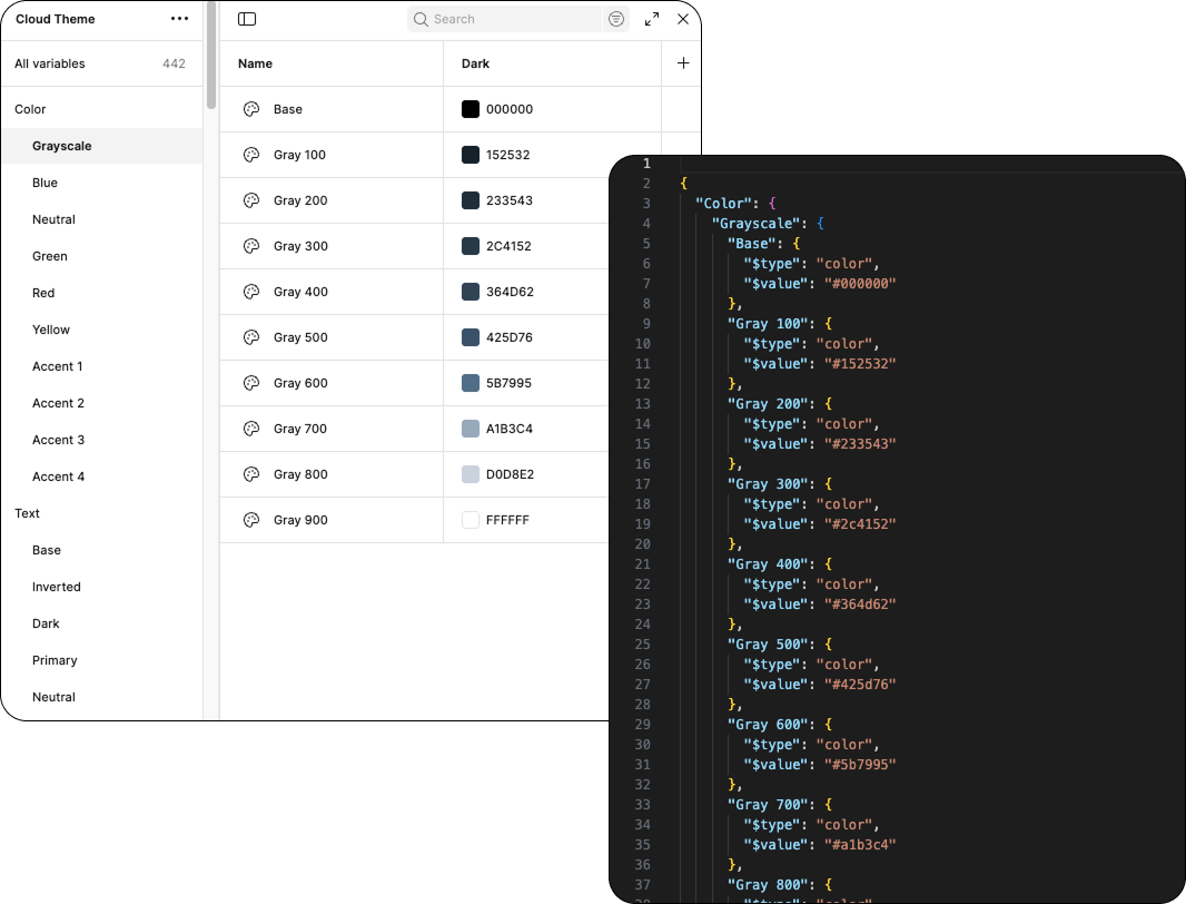 To make the engineering handoff smooth, I worked on ways to convert our design system styles into JSON files that the engineering team could reference during development. This allowed the engineers to have a single reference point define how everything looked instead of the “traditional” method of manually hard coding every instance when a style was used.